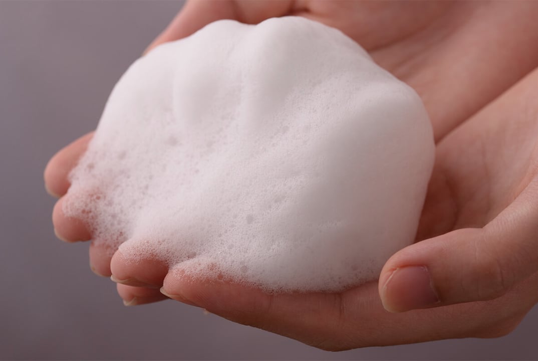 ・ゴシゴシこすらずに、泡で包み込むように優しくマッサージ。